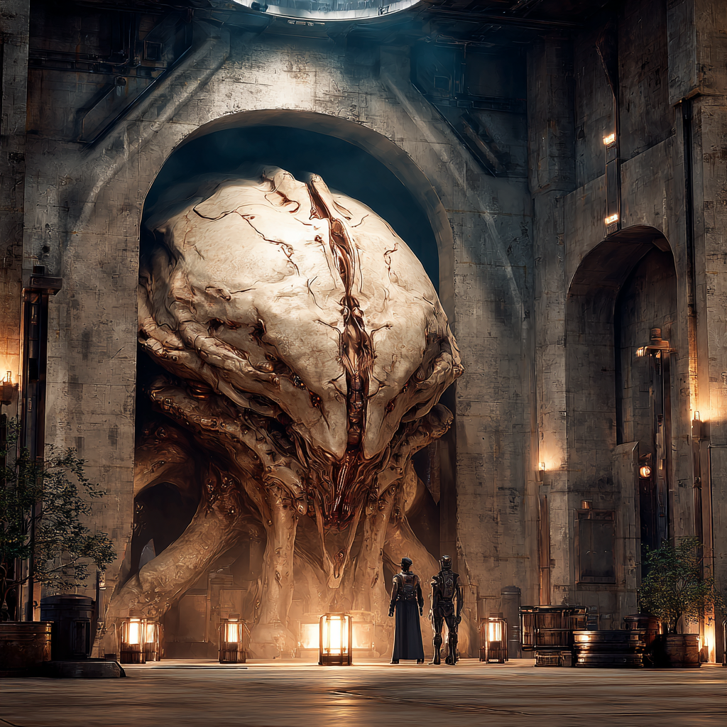 Vöxtr — Jǫturmál for “womb storm”—are the Fenris Horde’s organic engines of conquest, hulking devices fused from Radi-Mon flesh, Europa’s crystalline shards, and bio amplifiers. Roughly rover-sized, these machines lie dormant until fueled by human captives, then pulse to life, spawning packs of Fenris Radi-Mons. A healthy, nubile woman must be connected to the Vöxtr to make it functional.