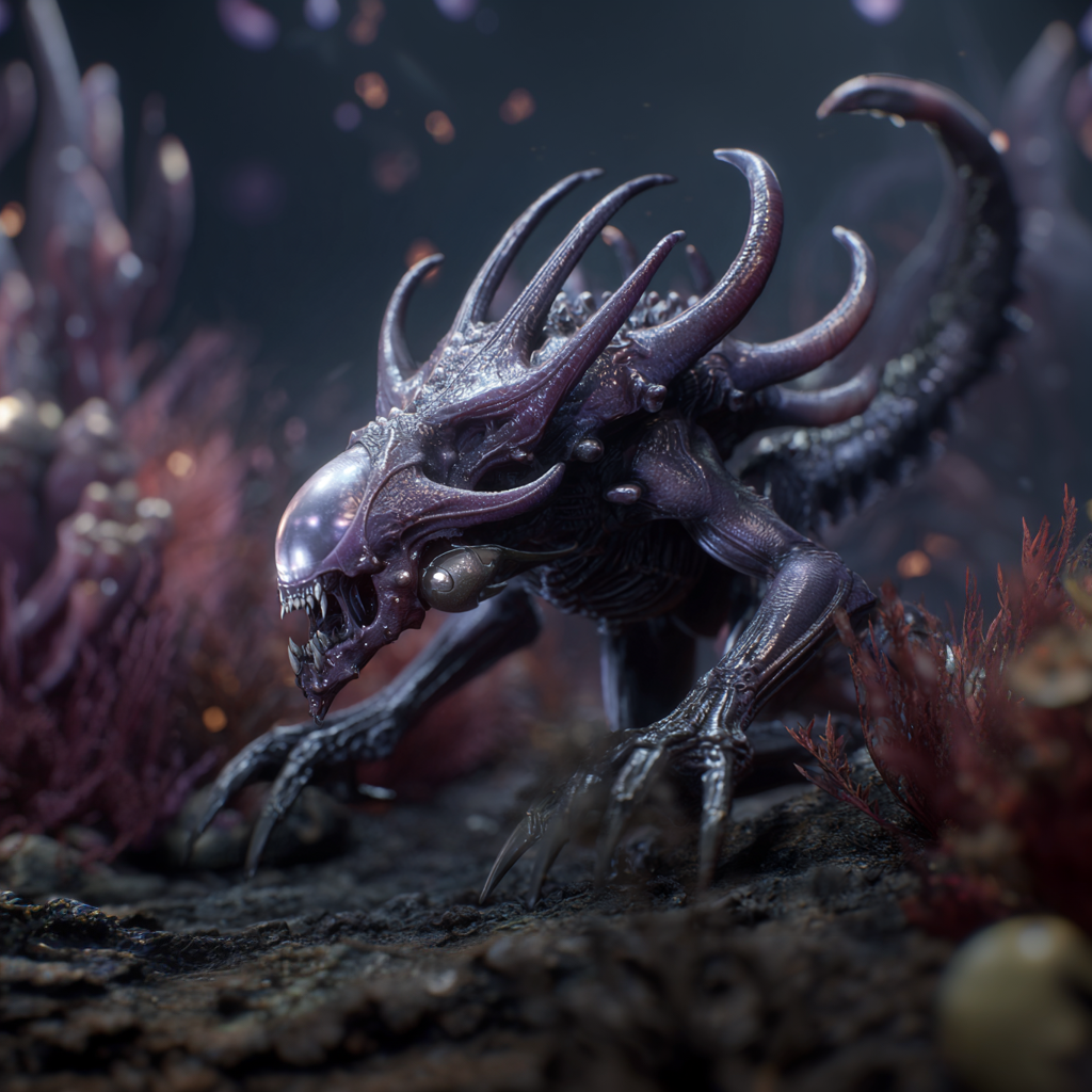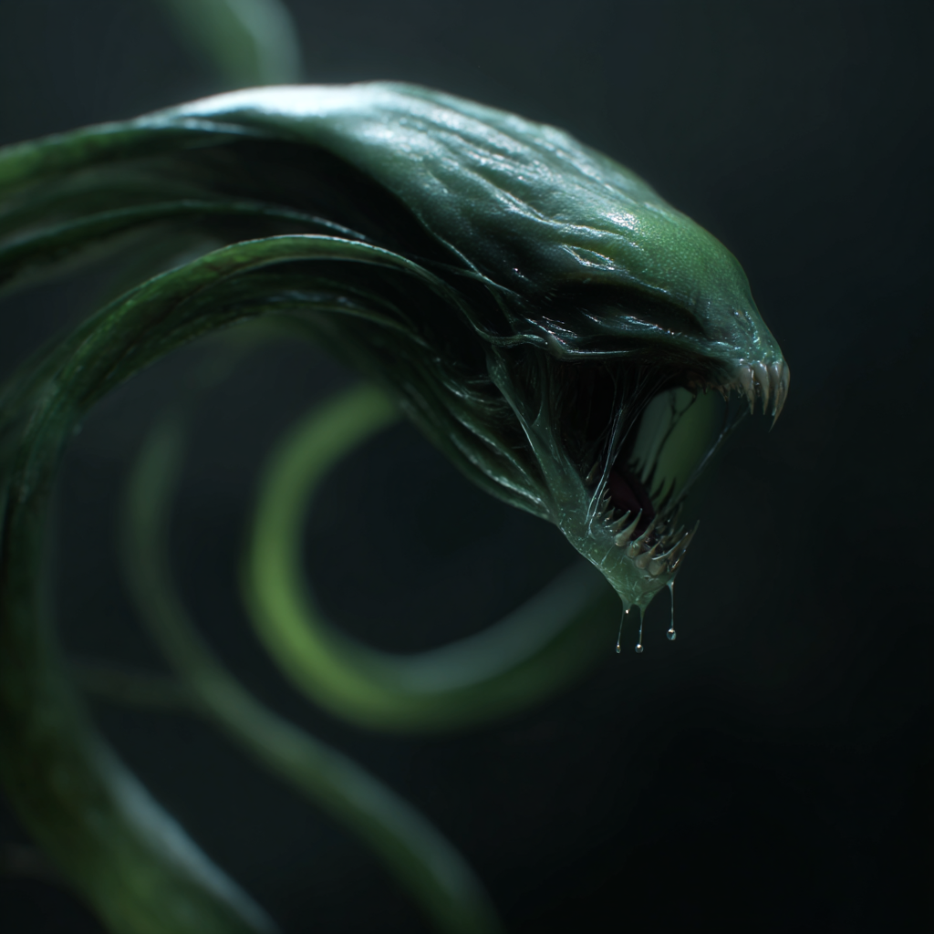 Evolved from Taiwanese Earthworms (Metaphire Taiwanensis) consuming Helionite (nuclear fusion waste), Proxima Creepers are the living symbiotes from Proxima Centauri that bond with every Sūkṛmuc. These slender, vine-like organisms nest in the host’s stomach, intestines, and—for females—the womb, ready to emerge through natural orifices as autonomous weapons. When called out, they slither free with a wet, stretching pull, their tendrils glistening under harsh lights, coiling like hungry snakes before striking.