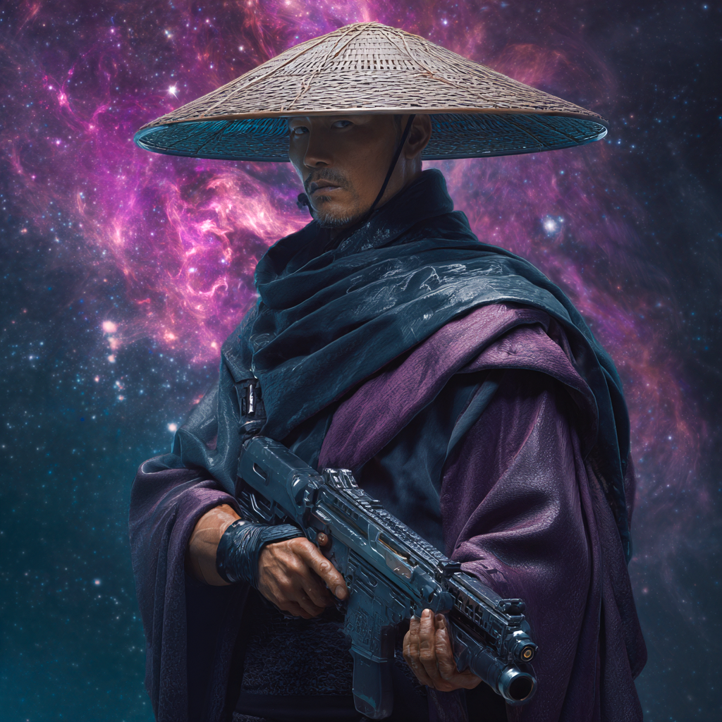 The Padma Lancers serve as the Rakshasa Horde’s swift-footed guardians and far-ranging scouts, blending ancient warrior traditions with modern firepower. Named for the lotus that blooms in Moro’s waters—beautiful yet resilient—these soldiers embody mobility and adaptability. Clad in flowing purple and black robes that enable silent movement, they patrol Proxima Centauri’s settlements and venture into hostile territory alongside Radi-Mon packs, their distinctive conical hats marking them as Moro’s chosen wardens.